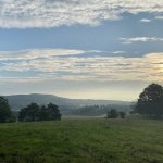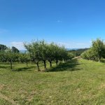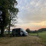 Přijeli jsme, až když se stmívalo a jelikož je pozemek svažitý, tak nám chvilku trvalo, než jsme si vybrali aspoň trochu rovné místo - hned u vjezdu, u lesa. Asi ne ideální, ale potmě jsme to lépe nezvládli. V sadu je obrovský klid. Za celou dobu projela dvě auta, ale řekla bych, že to byla spíš výjimka. Jinak žádný ani vzdálený hluk, žádná světla. Majitel se ráno zastavil a varoval před ovády, ale protože bylo celkem chladno, tak nás neotravovali.