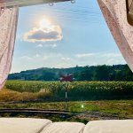 Byli jsme spokojení 😊. Krásná příroda v okolí (i v dešti 😉), hospoda otevřená, z pozemku jsme (tentokrát) vyjeli, I když byla tráva podmáčená.