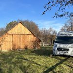 Téměř "in the middle of nowhere" 🙂. Okolo pozemku sice vede cyklostezka, ale už dávno před setměním všechno utichlo a my měli absolutní soukromí. Trochu nás znejistěl zákaz vjezdu do lesa, ale pan majitel nás později ujistil, že povolení má. Otevírání vrat doporučuji přenechat tomu silnějšímu z posádky, jelikož sloupy jsou trochu uhnilé a mě to málem zavalilo 😂. Prý se ale chystá rekonstrukce. Jinak je to opravdu malebné místo, kde vás ráno namísto zpěvu ptáků vzbudí bučení krav 🙂