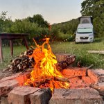 Tento bezkemp možná není nejmalebnejší, ale vyhrává na plné čáře doprovodnými zážitky. Je umístěný v blízkosti vesnice, ale oba večery, které jsme tam strávili, byly velmi klidné a tiché. S panem majitelem jsme si příjemně popovídali, vyměnili cestovatelské zážitky, ochutnali víno z domácího sklípku a nakonec se i svezli na vláčku. Po náročném cyklovyletu jsme se vykoupali v nedaleké řece, která byla čistá a osvěžující. Určitě doporučujeme!