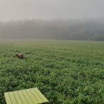 Rybníček je úžasný vzdálený pěknou procházkou dolů jetelovým polem. Tam je romantika na druhou, až jsem-po hodně dlouhé době- zalitoval že nemám stan. Kdo chce ale na záchod musí dolů k rybníčku, stejně tak zase pro pitnou vodu nahoru ke statku.