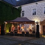 Pan správce je velmi ochotný od okamžiku reservace v průběhu pobytu i při organizování prohlídky.Po příjezdu nás uvedl na pozemek, který je dvorem přilehlého bývalého JZD a sousedí s plotem zámku.Místa, na dvoře zámku, která byla s výhledem na řeku jsou prý určena pouze pro stanaře.Voda, elektřina i záchod perfektně fungovala ze zázemí na zámku. Pokud jsme si stoleček otočili s výhledem na zámek užívali jsme si pěkné romantiky. Škoda že rudí kolonizátoři a denacifisté při svém kvapném ústupu do propadliště dějin s sebou nevzali všechen ten fujtajbl co při kolektivizaci tu zanechali. No ono ted peklo bude asi hodně přeplněné-) . Čas pobytu zde odměřují věžní hodiny zámku klinkotáním každou čtvrthodinu,ale po nějaké době si zvyknete.