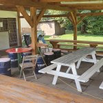 Zázemí je bezvadné dle popisu, krásný suchý WC, voda zahradní hadicí ze studny a elektřina vytažena na verandě chatky. Právě tato veranda byla úžasná / chrání před deštěm nebo sluncem- strom na pozemku není/.Kdybychom neměli nadupaný program na výlety /Hrad Točník a Žebrák 15 km/ tak bychom tam seděli celou dobu a kochali se výhledem do kraje.