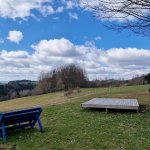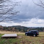 Když jsem viděl tohle místo na webu, označil jsem si ho srdíčkem s tím, že to vypadá na pěkné místo a že se tam musím určitě podívat. Když jsem pak dorazil na pozemek, tak jsem si ho okamžitě zamiloval, protože to místo je ve skutečnosti prostě úžasné. Nádherná příroda, pěkné výhledy a relativně klidné místo. Za celé 3 dny, co jsem tu byl, prošli po cestě opodál 2 lidé a pak se přijel podívat jeden pán na čtyřkolce, který jel okolo. Pěkně jsme si popovídali, takže to neberu jako nějakou překážku. Přijel se podívat i pan majitel, aby se optal, zdali je všechno v pořádku a též jsme si pěkně popovídali. Příjezdová cesta byla v pohodě, ale přijel jsem autem se 4x4. Nicméně začátek cesty je již zpevněn štěrkem a pak se jede do kopce po louce, takže to není žádný hrozný terén. :-)