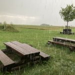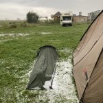 Prodloužili jsme si pobyt a zvrtlo se počasí. Ale i při kroupách je kam se schovat, osušit se a dát si teplou sprchu a horký grog :-)