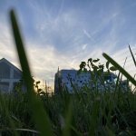 Z druhé strany vede úzká silnička, občas tam někdo projde nebo projede, ale večer je klid.