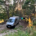 Kouzelné místo v odlehlém lese velké tak akorát (na velký karavan může být těsno). Samota, ticho, ohniště a příjemný majitel.