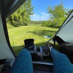 Krásný velký pozemek, kde se náš bafan do systosti vylítal, skvěle značená příjezdová cesta👌 parádní ohniště, možnost půjčení sekerky a opíkaček, no a ta luxusní kadibudka 😁🤗🤫 s majiteli byla rychlá a milá domluva a je super, že i na tak velkém pozemku je jen jedna rezervace, protože jste úplně v klidu a o samotě 👏 určitě doporučujeme a děkujeme! 💙