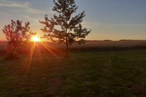 Ochotný pan majitel, bohužel z tech. důvodů nestihl posekat pozemek, tak jsme využili příjezdové cesty do statku. Příjezdová cesta není moc široká, s větším obytným autem, může být problém.