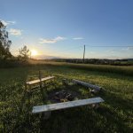 Super vybavený pozemek s vlastním ohništěm, sekyrkou, pilkou, vodou a sezením. K využití i kadibudka:-) Do třech stran je pozemek obklopený zelení, stromy a výhledem na západ (Přes stromy). Jedna strana trochu kazí dojem stanování na samotě - jelikož je tam velký rodinný dům, který má zakrytou zahradu jen z části. Jinak ale vše odpovídá a rozhodně nadprůměrné místo ke spaní. Děkujeme i za rychlou komunikaci s majiteli.