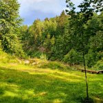 Hezká louka s malým remízkem a ovocnými stromy. Kolem louky je pole s řepkou, která v době našeho bivakování dost intenzivně voněla, jestli má tedy někdo alergii na pyl z řepky, je třeba s tím počítat. Nám voňavý žlutý lán nevadil. K místnímu lomu je to ani ne 10 minut přes pole. Pozor, u lomu je cedule, že se tam nesmí koupat psi, my to teda zjistili, až poslední den, takže naše lochneska si občas zaplavala a nikdo s tím problém neměl. Pozemek je prakticky hned u silnice, není tam tedy žádný hustý provoz, ale je dobré to vědět. Na místě je hned několik možností, kde si rozdělat oheň, takže i kdyby bylo na louce víc posádek, každá může mít své ohniště. My tam ten minulý víkend měli teda už docela vysokou trávu a občas i pár kopřiv, ale majitelé měli v plánu sekat, tak si myslím, že teď už je tam trávníček ideální.. Příjezd na louku je dobře poznat a je zpevněný, nebyl problém s karavanem vjet tam a ani zpátky, kdy byla louka mokrá po dešti. V okolí je spousta možností na výlety, za chvilku jste v Telči nebo třeba na naučné stezce v Počátcích. S majiteli jsme se potkat nepotřebovali, vše klapalo jako po drátkách, takže jsme spolu mluvili jenom po telefonu při odjezdu a za nás sympaťáci. :)