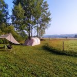 Krásné a klidné místo, ideální jako základna k podnikání výletů po blízkém i vzdálenějším okolí. O asfaltce pod pozemkem jsme téměř nevěděli a je na ní minimální provoz - pár aut za celý den, spíše pěší. Pozemek je krásně zastíněný a slunce na něj svítí jen když je vysoko nad hlavou. To je též důvod, že jedno ze stanovišť, je trošku vlhčí, ale není to zásadní problém. Pobyt jsme si užili a rádi se vrátíme.