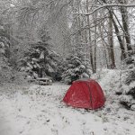 Tiché, krásné místo. Byl jsem na jednu noc pod stanem. Zrovna nasnežilo. Chválím přístřešek se dřevem a ohništêm.