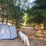 Krásné a klidné místo k odpočinku v přírodě, ideální pro kempaře s pejsky, kteří se úžasně proběhnou po okolí pozemku.