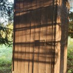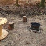 Rozhodně je lepší si pozemek rezervovat jen pro sebe. :) Kadibudka jde zavřít pouze částečně - dveřím překáží trám na zemi. Dřevo na oheň bylo k dispozici (schované pod stříškou, takže suché, i když pršelo) a gril také našel využití. :)