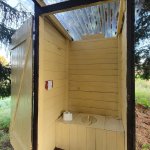 Vše bylo naprosto v pořádku, klidné místo na stanování přímo v lesíku, zároveň s možností odpočinku v trávě na dece s knížkou a večer s opékáním buřtů na ohni. Ohniště s připravenou mřížkou na grilování nebo na ešus. Čistá a hezká kadibudka byla jen dalším bonusem, jen si vemte toaletní papír. :))