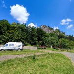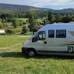 Super klidné místo, nakonec jsme prodloužili o den. Kousek cesty nahohoru na zříceninu nebo naopak dolů do pivovaru! Původní záměr vykoupat se v řece vzal za své předchozími bouřkami, takže voda byla hnědá, takže jsme využili skvělé koupaliště v Železném Brodu. U pozemku je trochu stísněný výjezd, na jedné straně vyčnívá betonová šachta, na druhé straně sloupek plotu, chte to víc manévrování. Byli jsme tu dvě noci úplně sami! Jeden večer jsme poslechli zdarma koncert z hradu, druhý večer koncert z obecního hřiště.