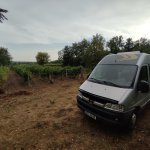 Místo jsme museli odhadovat podle fotek a pak radši přímo u majitele, abychom někomu nestáli na noc ve vinici (i když souřadnice souhlasí). Povedlo se. Stáli jsme na horní části, tedy u kapličky. Bohužel dost foukalo a z výhledů moc nebylo, ale i tak je místo krásné a budeme se muset vrátit, kvůli těm výhledům :) Trochu matoucí je příjezd po cestě, která je označená jako stezka pro pěší a cyklisty.