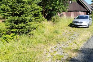Nad pozemkem je chatka ,ale nijak nevadí pokud dobře postavíte auto nebo si najdete vhodné místo ani o ní nevíte :-)