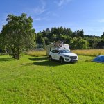 Za mne je toto skvělý pozemek. Rovinatý, cca 25x90m, kousek za vesnicí. K přilehlé silnici je to cca 70m, ale celkem málo frekventovaná a poklidná. Díky stožárům VN, vysílači a hřbitovu není sice výhled nijak famózní, ale klid to vynahradí…resp. by vynahradil, kdyby se na pozemku místo 8 posádek druhou noc vč. nás neobjevilo posádek 11….a ne úplně nejtišších… předpokládám, že bez vědomí majitele… Jinak kadibudka na kraji byla plně vybavena a čistá, takže body plus… 😊