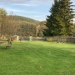 Pozemek oplocený, působí velmi bezpečně. Soukromá hospůdka na pozemku. Krásný trávník a čistota.