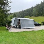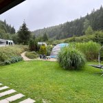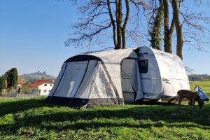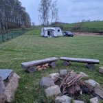 Krásný, velký a klidný pozemek na samém konci obce. Hezký výhled do okolí. Pro delší karavany horší přístup, náš 7,3m tak akorát na vjetí do vrat. Samozřejmě by se dalo odpojit a vyřešit moverem. V zimě bude pravdě podobně horší přístup. Blízká estakáda D8 rozhodně není rušivým elementem, ani o ní nevíte. Pozemek je ideální pro cestování se psy. Zázemí na pozemku je pěkné, venkovní osvětlená terasa s posezením, ohniště, připravené dřevo. Bohužel jsme nevyužili, ale rozhodně je pěkně zařízené. Rádi se sem vrátíme. Děkujeme