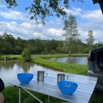 Bohužel nám celý večer pršelo a nemohli jsme si naplno užít krásy tohohle místa, ale aspoň jsme spali za doprovodu zvuků kachen, ryb a žab. Nádhera, vřele doporučuji.
