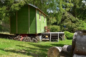 Maringotka byla dostatečně zařízená, od majitelů je hezké, že zde mají čaj, kafe i dřevo na oheň.