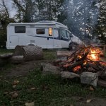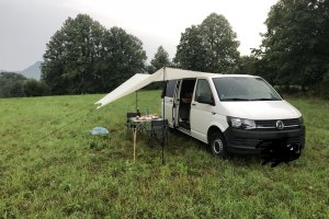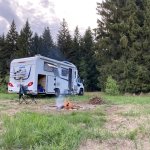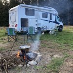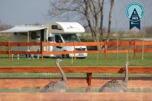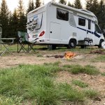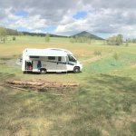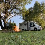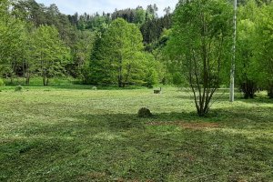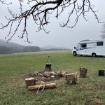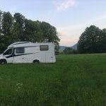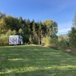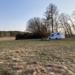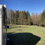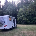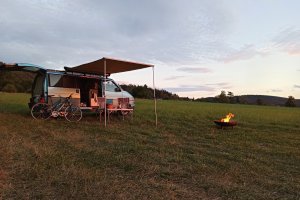 Místo je hezké, všechno podle popisu, komunikace s majitelem vstřícná. Vybrali jsme si pozemek č. 1 a zůstali jen jeden den, protože jsme tentokrát naplánovali víc zastávek. Přes noc dost pršelo, ale kupodivu jsme z louky neměli problém odjet. V sobotu odpoledne se nám zdála trochu hlučnější silnice, která pozemek lemuje, ale v noci a další ráno skoro nic nejezdilo a slyšely jsme už jen žáby, ptáky a jeleny :-)