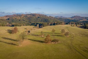 Brdy na dosah z rozlehlé louky s fantastickým výhledem