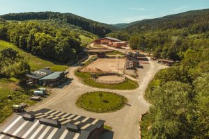 Westernová oáza v srdci Evropy. Vše promyšlené do detailů. Parkování pro karavan v rámci areálů i v blízkosti koni. Doporučuji pro rodiny s dětmi. V blízkosti hodně cyklostezek. Wc, voda, vylevka i Elektrika k dispozici