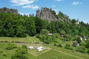Zahrada Český ráj s výhledem na hrad Valdštejn, v blízkosti Hrubá Skála a Trosky