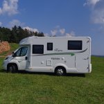 Na pozemek, který jsme si vybrali, jsme naším kemprem nebyli schopni vyjet, protože to bylo do kopce a v zatáčce. Nicméně pan majitel, který u toho byl, to prohlásil za svoji chybu a doprovodil nás se svým autem na jiný jeho pozemek. Tam byl úžasný výhled a kouzelné místo. Viz. fotografie: Tak to vypadal výhled z postele kempru. Takže nakonec velká spokojenost. A rádi doporučujeme.