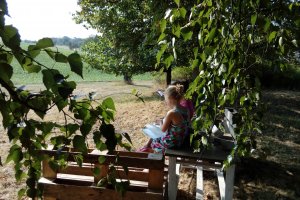 Trochu jsme se obávali "spolubydlících" (tři další rezervace se psy i dětmi). Ale první zkušenost s "bezkempaři" výborná. Snad někdy přijedeme přespat i na stromě a posedět u ohýnku. Přijeli jsme na kole z Příbrami, přes koupaliště v Obecnici (čisté a minimum lidí) a Záskalskou nádrž. Brdy jsou krásné.