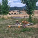 Krásný klidný pozemek s naprosto dechberoucím výhledem. Pan majitel byl strašně ochotný, poslal video jak se na pozemek dostat. Jen je pozemek svažitý, ale poradili jsme si. Dřevo na ohýnek bylo připraveno.