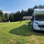 Pozemek a parkování přímo u sjezdovky. Ráno od 7:30 již čilý ruch na parkovišti, lyžovat se začíná už v 8:00 (start lanovek a vleků). Parkoviště přes den slouží jako záchytné pro areál, mimo provoz sjezdovek téměř dokonalý klid. Velkým nedostatkem je absence přípojky elektřiny v zimě.