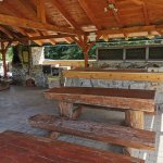 Zahrada za hospodou, pozemek je oplocený, k dispozici solární sprcha (bohužel všem na očích, takže jinak než v plavkách to nešlo), dvojdřez na umývání nádobí, rukou atd., elektřina a 24 hodin přístupné vnitřní wc a umyvadlo + terasa, která patří k hospodě.