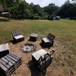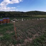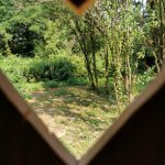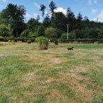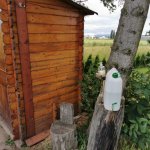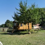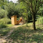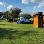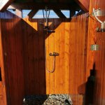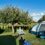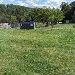 Pozemek se nachází na konci/na začátku vesnice (podle směru příjezdu), je obrovský, udržovaný a rovný, olemovaný jabloněmi. K dispozici je opravdu prostorná solární sprcha, vzadu s kohoutkem s pitnou vodou, na konci pozemku krásná dřevěná kadibudka se srdíčkem a výhledem, vedle pak kanystr s vodou na umytí a mycí gel.