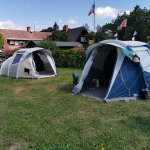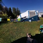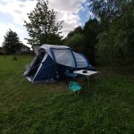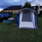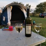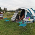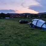 Pozemek je opravdu svažitý, a i když jsme v dolní části našli relativně rovný pozemek, tak nám při spaní neustále sjížděly matračky dolů, což bylo otravné a nepohodlné. Na jednorázové přespání ok, ale déle, jako jsme byli my, ne. Možnost využití zázemí nedalekého kempu, zastaralé, ale funkční a relativně čisté, bez hluku z kempu. Nepříjemné byly ale hluky okolo... z penzionu nad námi, z hlavní cesty, vedle nás je cesta ke kempu a dalším pozemkům, takže všichni kolem nás chodili nebo jezdili, od traktoru, který každý den ráno v 6 startoval hned vedle nás, od podobných strojů na nedalekém poli třeba v 8 večer. Nám by to až tak nevadilo, ale máme malé dítě, takže nic moc.