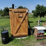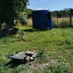 K dispozici byla toi-toika a barel s vodou na umytí rukou a naproti přes cestu na druhém pozemku jsme měli k dispozici pumpu s užitkovou/pitnou vodou.