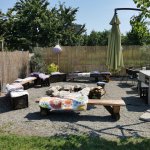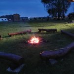 Krásný oplocený pozemek s příjemným posezením, vybavením, dekami a ohništěm, které jsme sice nevyužili, ale ráno na snídani a kávičku jsme využili, protože už tam příjemně svítilo sluníčko. Kromě dřevěné kadibudky jsme ocenili solární sprchu, po těch vedrech přes den to bodlo 😊 Z jedné strany na nás koukali psi, z druhé strany nás chodily okukovat sousedovic husy a jejich holka si oblíbila našeho syna, hráli si spolu přes plot 😁