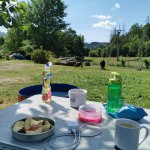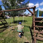 Pozemek super, udržovaný, velký, kousek od něj splav který v těch parných dnech přišel vhod,na pozemku kozy a pejsci (pozor na mlsnou Barču a přítulného Grima), což ocenily hlavně děti. Samoobslužný bar je pecka, plně vybavené wc a umyvadlo, už tomu chyběla jen zahradní sprcha, ale tu nahradil splav nebo hadice s vodou, kterou děti ochotně zalévaly trávu, stříkaly po sobě nebo si plnili bazének, který hned při příjezdu poskytl ochotný majitel Lukáš 😊
