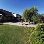 V přední části bydlí pan majitel a kromě bazénu a spoustu pěstovaných surovin, jsou zde i slepičky, které se našemu synovi líbily nejvíc, chodil je zdraví ráno, odpoledne I večer 😁 Pan majitel je příjemný člověk, při příjezdu nám vše vysvětlil, poskytl tipy na zajímavá místa a na konci pobytu obdaroval našeho syna dárečkem ❤️