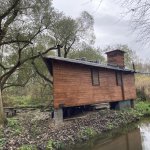 Krásná chatička, čistá, minimalistická, ale prostorná, moc příjemné zurčení tekoucí vody, jen je to blízko cesty a v zimě bez obrostlých stromů na nás trochu moc otevřené, pohled přes vodu na chatičku krásný, z druhé strany už to tak dobře nefungovalo.