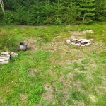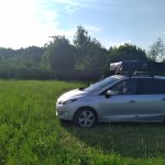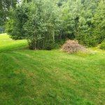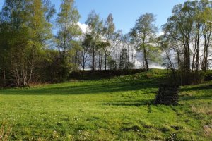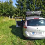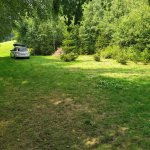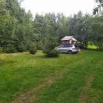 Pozemek kousek od silnice, o kousek níž byla možnost sjet a zaparkovat u malého potoka co teče přes pozemek. Ale kvůli několikadenním dešťům jsme si s těžkým autem netroufli.