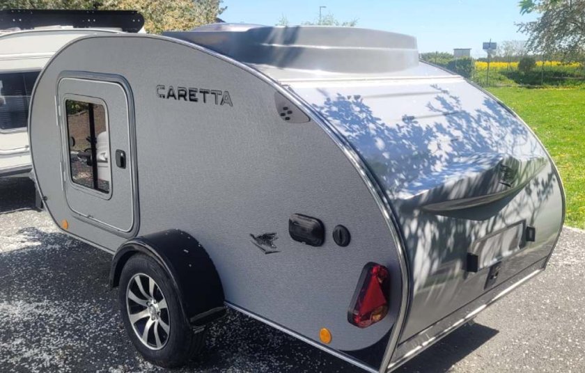 Caretta 1500 je stylový karavan nové generace pro 2 osoby. Aerodynamický, lehký a výborně ovladatelný Vybavený pohodlnou postelí, kuchyňkou a lednicí.