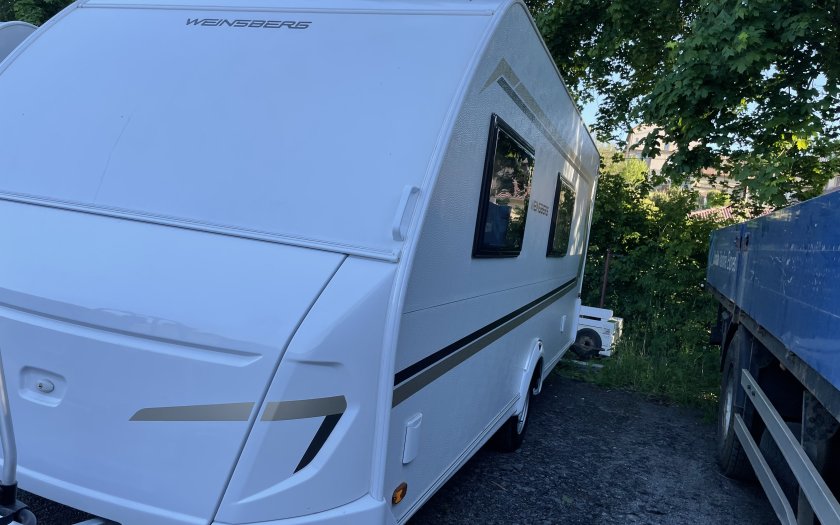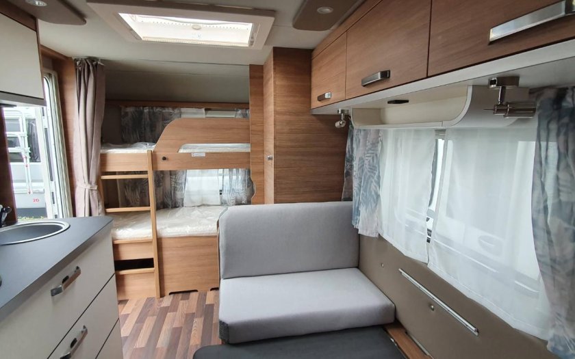 Karavan s francouzským luzkem vpředu, rozkladacim sezenim uprostred a palandami vzadu (6luzek). Kuchyňka, lednice, nezávisle topení, koupelna s toaletou, sprcha. Nádrž vody 45litru, odpadní nádrž 25l.