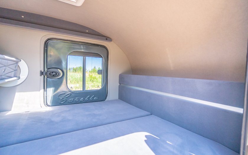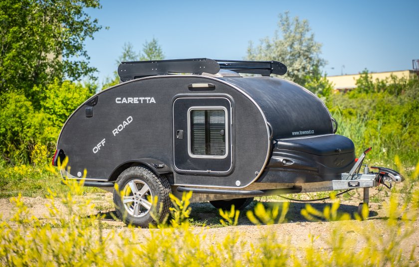 Caretta off-road se může pochlubit svým elegantním designem s vestavěným aerodynamickým spoilerem, který poskytuje vynikající tažný výkon a ovladatelnost, je plně bržděná, s vlastním podvozkem a vhodná pro všechna terénní vozidla. Po zvednutí dveří zavazadlového prostoru se odhalí nádherně vybavená kuchyň se sporákem, dřezem, lednicí, přívodem vody a kvalitní pracovní deskou se skříňkami. Karavan nabízí také prostorný interiér. Jednou z předností je komfortní postel o šířce 1500 mm, ideální pro ty, kteří po náročném dni vyžadují extra luxus.