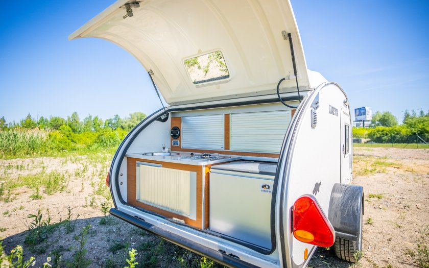 Karavan disponuje vnitřním i venkovním osvětlením, ledničkou, nespočtem úložných prostor a 60 Ah baterii. Vaše kulinářské schopnosti můžete předvést ve venkovní kuchyňce s plynovým vařičem a dřezem s tekoucí vodou.