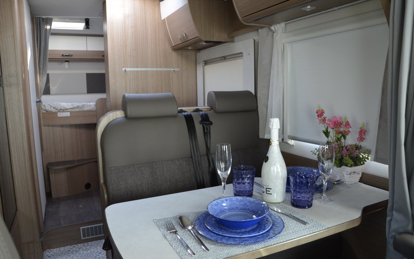 Vybavení: solární panel, markýza, venkovní koberec, kempovací stůl a židličky, prostorná garáž s oboustranným vstupem, držák na 4 kola, 5 míst k sezení i spaní, velká lednice s mrazákem, kuchyňka (dřez, plynový sporák), kempingové nádobí, samostatná sprcha, samostatné WC, moskytiéra na oknech a dveřích, možnost uzavření zadní části karavanu a vytvoření prostoru oddělené ložnice, stahovací lůžko, otočná přední sedadla, GPS navigace, zadní couvací kamera, tempomat, trezor, měnič napětí 12V/230V 600W, dvě plynové bomby s automatickým přepínáním a crash senzorem, dálniční známka pro Česko a Slovensko, vyrovnávací nájezdové klíny.